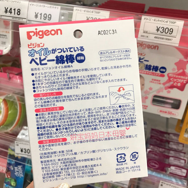 Japanese baby baby olive oil cotton swabs cotton swabs thin shaft type 50 pieces