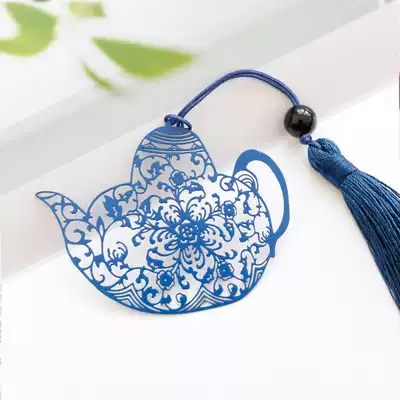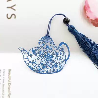 (Blue and white drunk) Chinese style hollow bookmarks creative classical wind metal bookmarks fresh students with birthday gifts