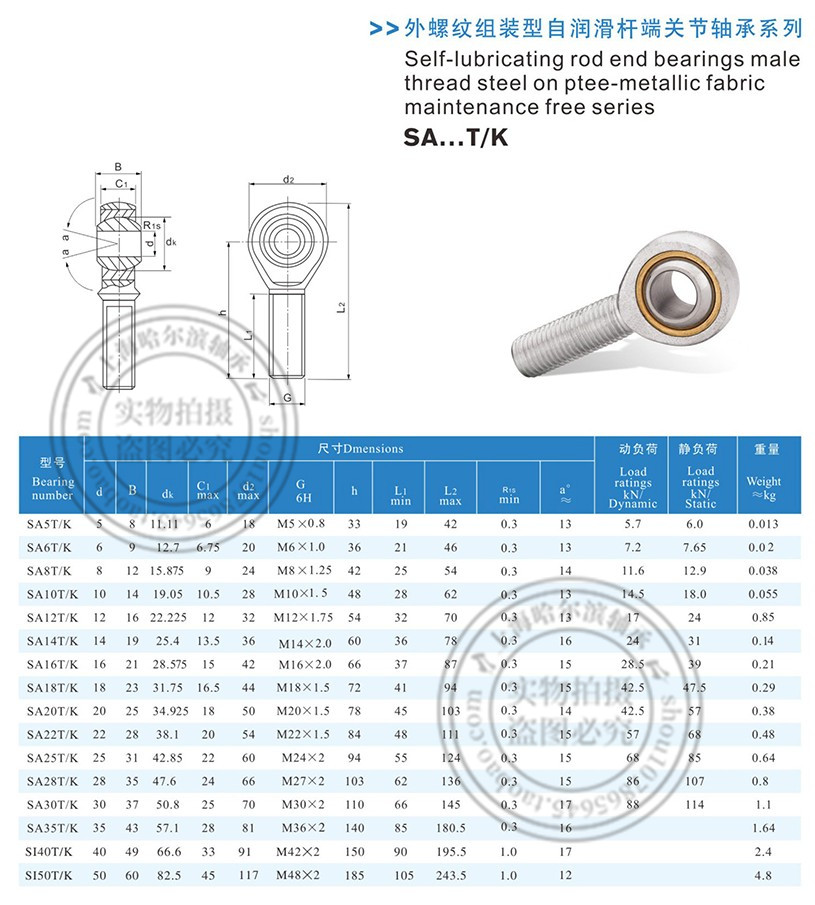 Fish eye rod end joint bearing SAL5 SA6 8 10 12 14 16 18 22 25 28 30 T K