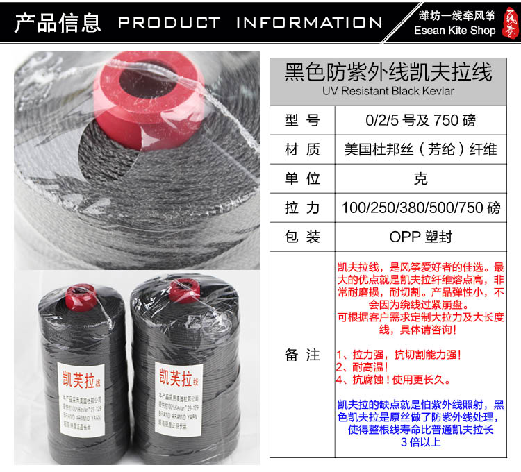 Black UV protection No. 5 6 7 woven Kevlar kite line 500 Changzhou 0 Kevlar