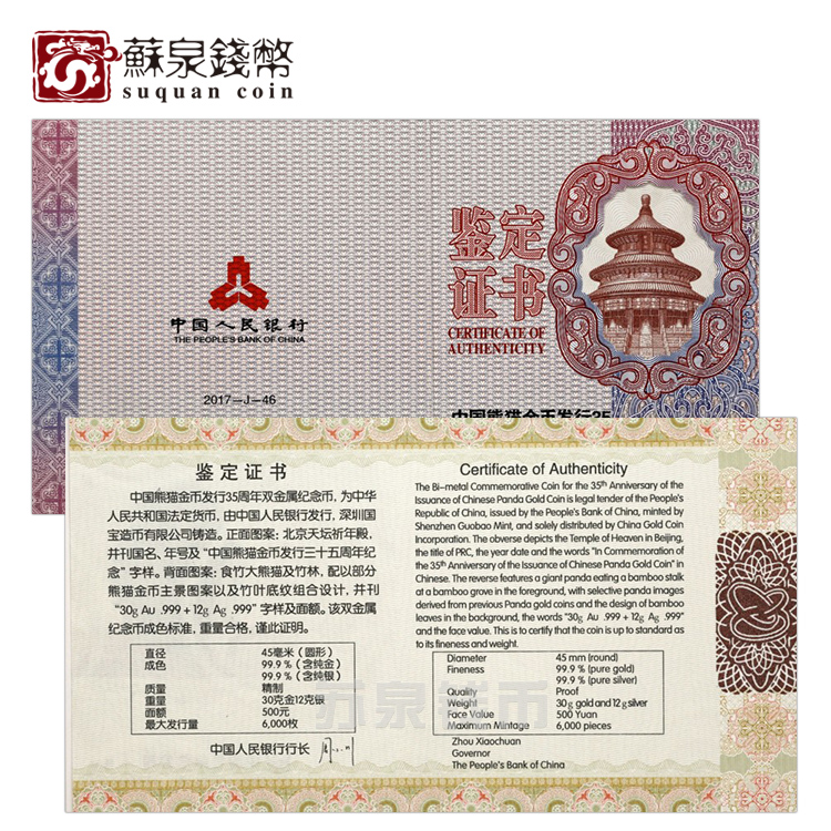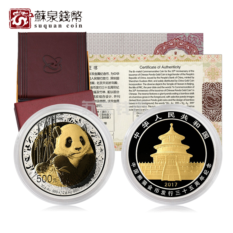 2017 30g Panda Gold Coin issued 35th Anniversary bimetallic coin with card box Panda Bimetallic Coin