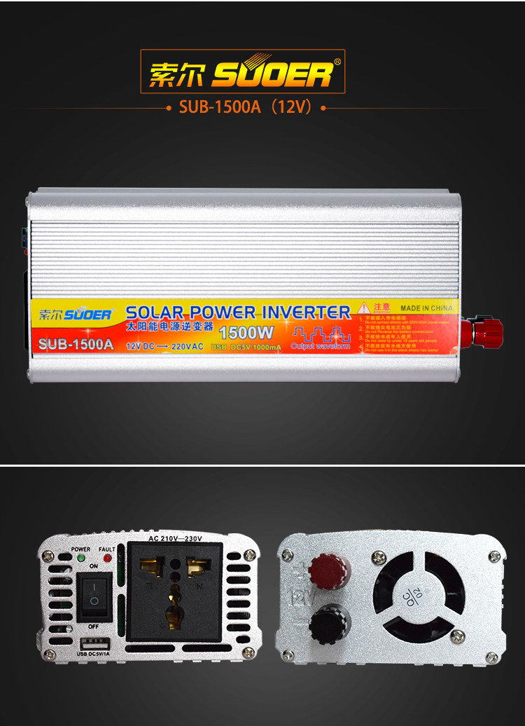 Sol 1500W 2000W Household car 12V24V to 220V high power inverter Emergency power converter