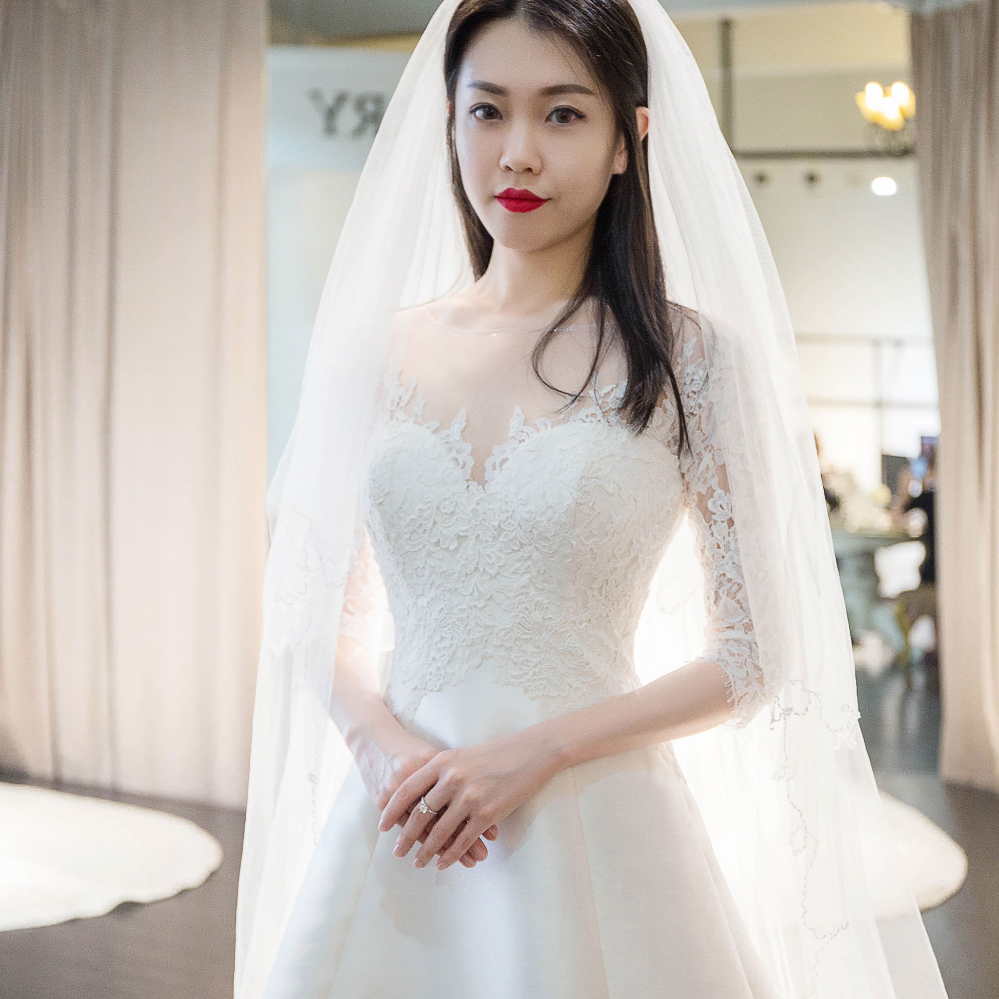 Satin Simple Bride Wedding Dress 2021 New Korean Palace Mid-Sleeve Backless High-end Small Light Wedding Wedding