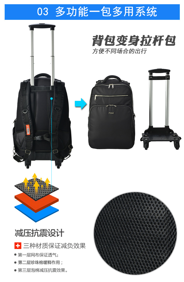 Korean Version Double Shoulder Lalever Bag Universal Wheel Removable Travel Bag Waterproof Suitcase Super Light Computer Business Boarding