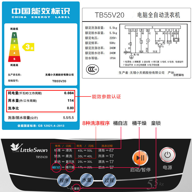 Small swan washing machine fully automatic home 5 5 kg wave wheel small mini dehydrated and dry dorm room TB55V20