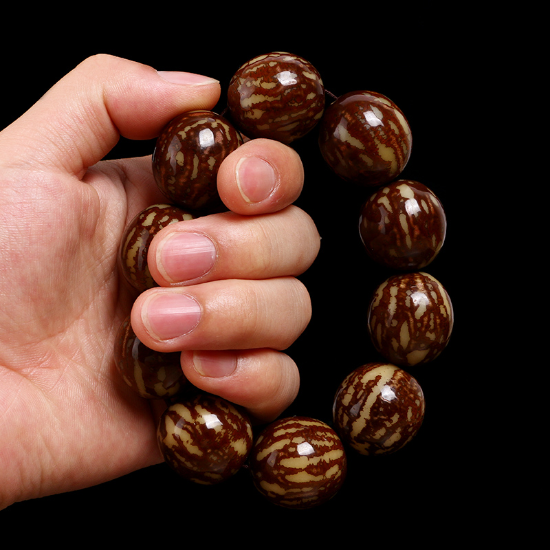 Large seed white Bodhi bodice bodice bodice bodice with tiger spotted Bodhi Buddha beads handmade with male and female playvedin beads in hand