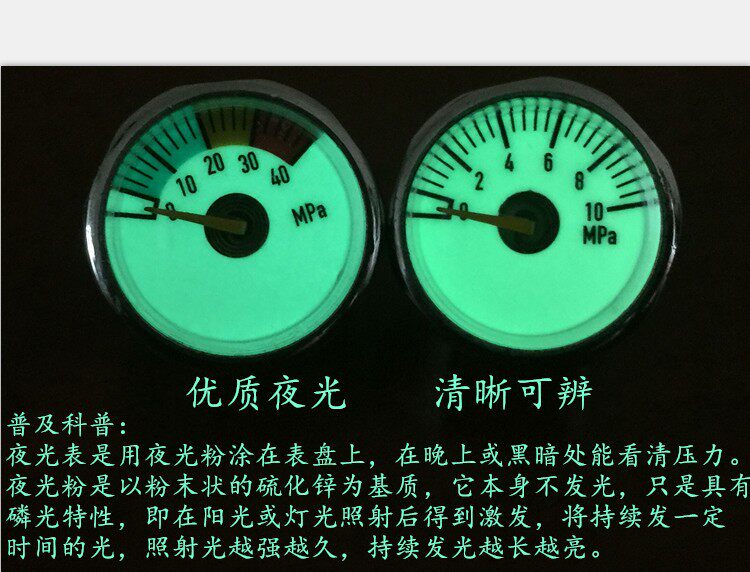 High pressure inflator pressure meter piezometric small gauge 5 10 20 30 40mpa constant pressure valve gas meter M8 luminated