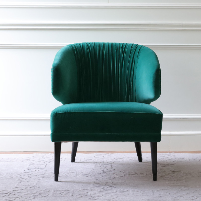 Nordic light and luxurious green velvet fabric sofa postmodern minimalist-like board room hotel single sofa with a light and luxurious