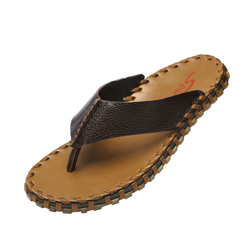 Slip-word slippers sandals real cow leather casual shoes beach shoes anti-skid bull solid drag male room outer tide