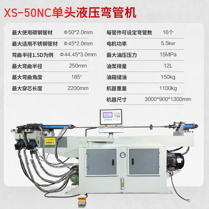 50NC single head hydraulic pipe bending machine semi-automatic numerical control bending machine greenhouse aluminium extrusion type material stainless steel round pipe U type