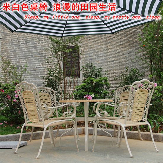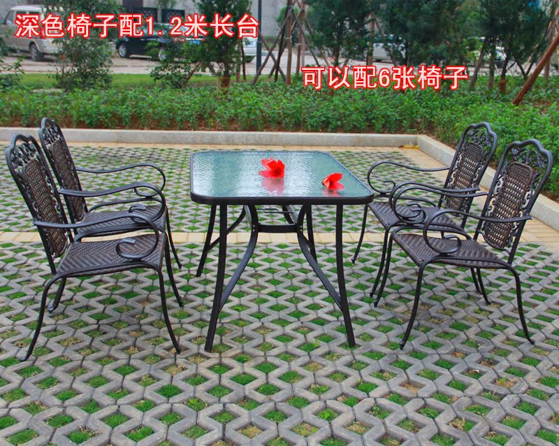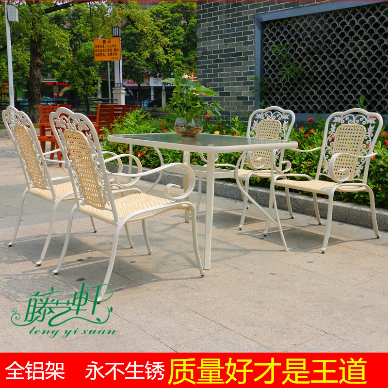 Cast aluminum garden courtyard patio leisure table and chairs 5-piece set of outdoor furniture balcony imitation rattan table and chair umbrella set combination