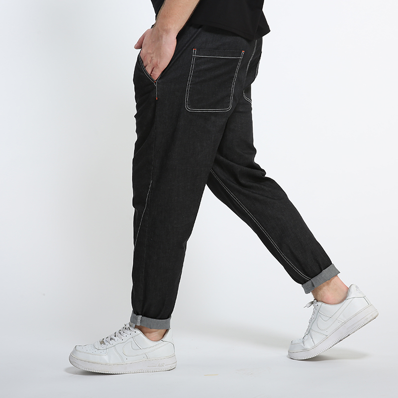 Black power large size men's pants plus fat summer fat jeans Stretch loose fat pants cigarette pants