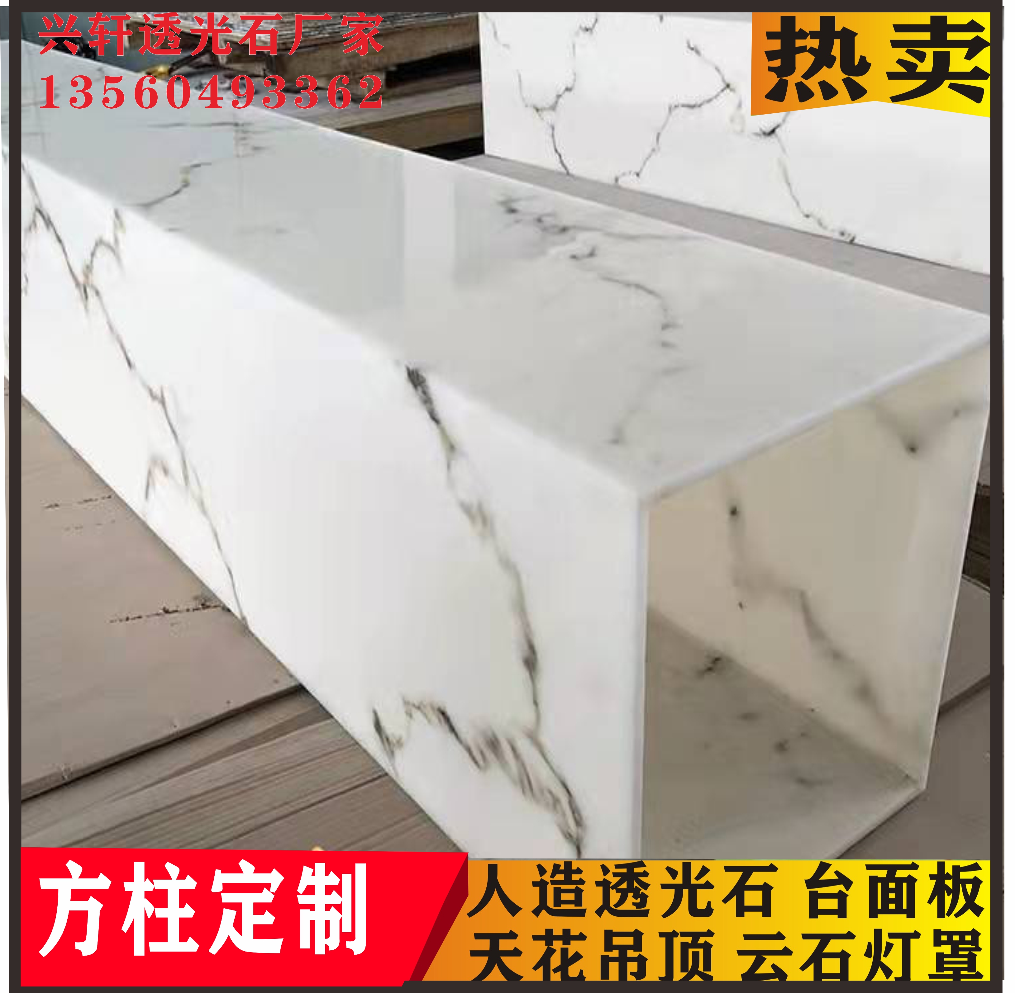 Translucent stone translucent board white background gray pattern square box light box ceiling street lamp bar counter material special-shaped processing manufacturers direct sales