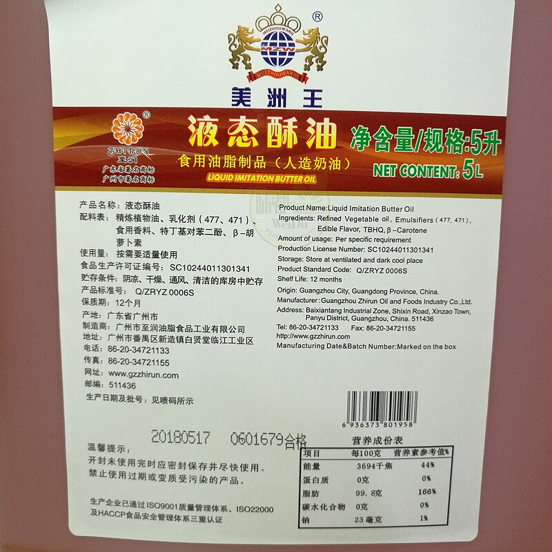 Americas King Liquid Ghee 5L Qi Wind Cake Cookie Moon Cake Special for Crisp Original Clothing Guangdong