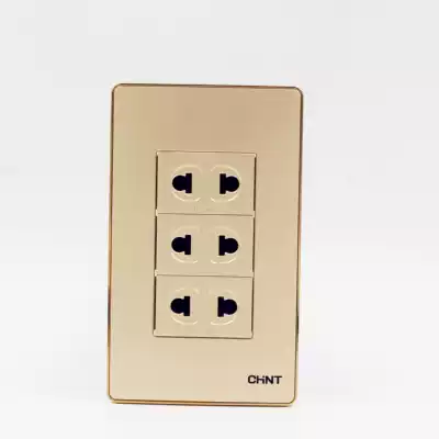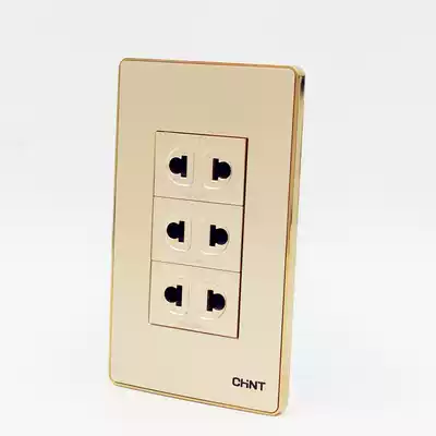Chint wall switch socket 120 type power socket six hole socket NEW9E champagne gold Two Two Two plug