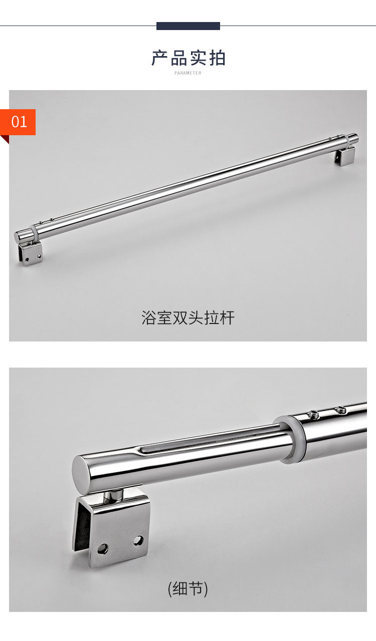 Shower room telescopic rod Adjustable length 304 stainless steel telescopic rod Glass fixed rod Shower room rod