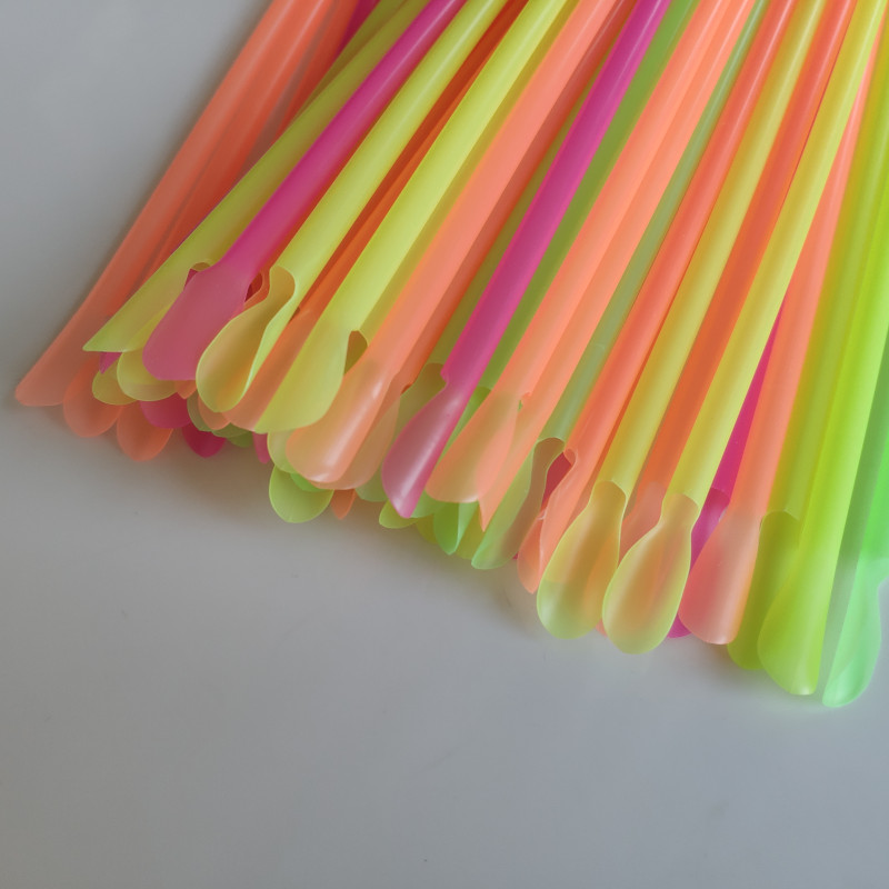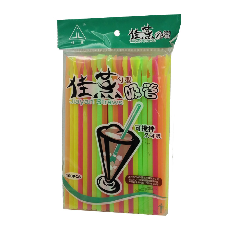 Disposable Spoon Type Straw Color Creative Drink Juice Straw With Spoon Straw Milkshake Ice Sand Straw 1000