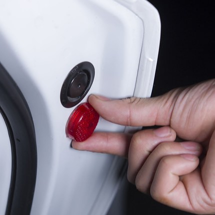 The door warning light is red. The door warning light is yellow. The door warning light is blue.