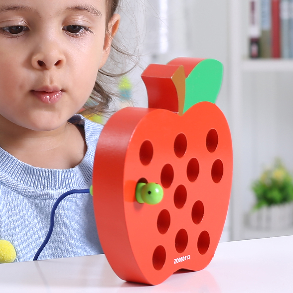 Montessori worms eat apple threading hands-on wearing rope Children 2-3-4-year-old kindergarten in small class Puzzle Toys