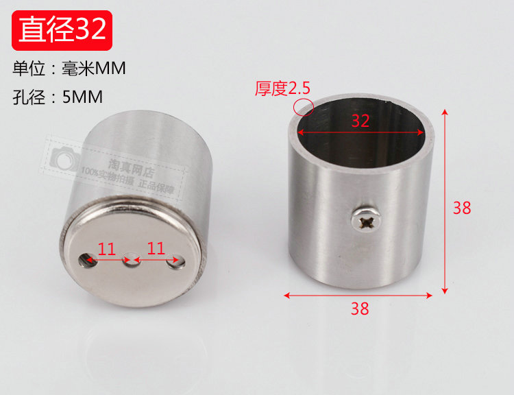 Thickened stainless steel tube seat Cylinder flange seat Cloth rod frame seat Round tube seat Cloth rod accessories Tube holder 32 25mm