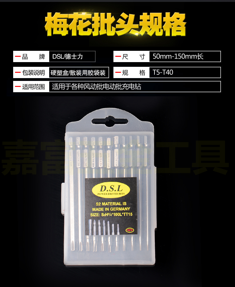 DSL S2 steel 100mm pneumatic plum blossom bit set with hole electric screwdriver head six-star electric batch mouth Tsui