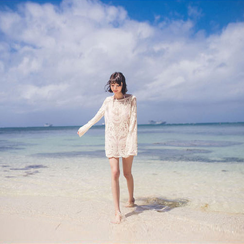 Bikini Shirt Woman Summer Sea Swimsuit Cover Hollow Lace Mid-long Edition with Beach Sun Protection Clothes