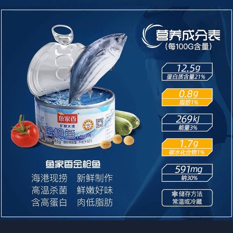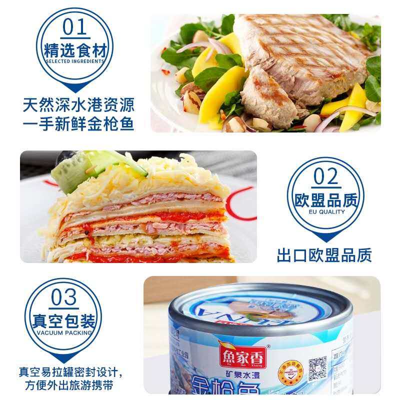 Yujiaxiang water-soaked canned tuna 185g*10 Ready-to-eat canned seafood fish Tuna sushi salad ingredients