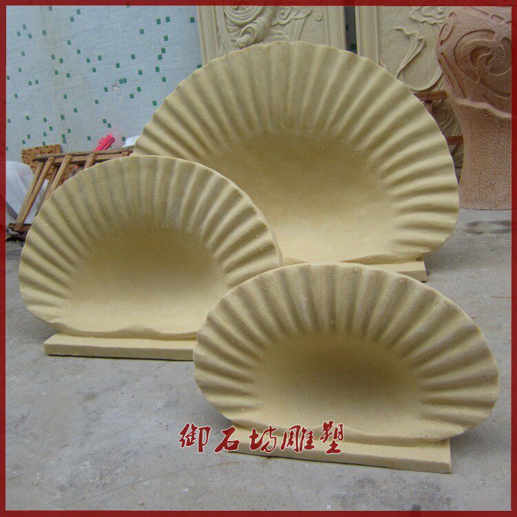 Sandstone embossed fiberglass fountain pool shell spout courtyard water feature wall water basin landscape sculpture background wall
