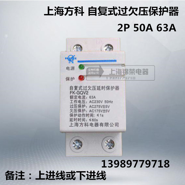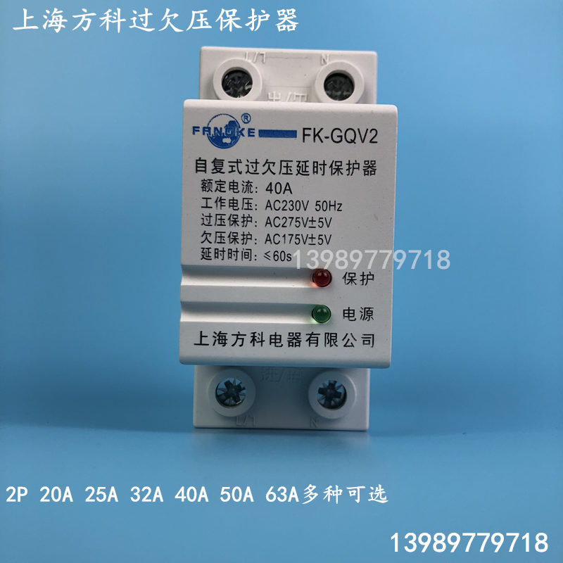 Shanghai Fangke FK-GQV2 self-replicating over-voltage protector 50A 63A with lamp household voltage protector