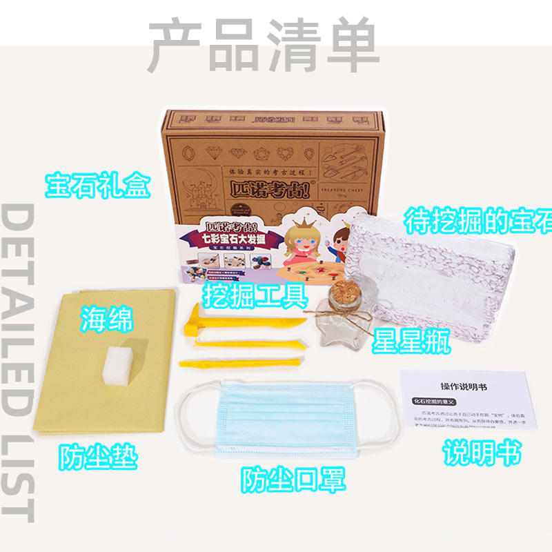 Pinot Children Archaeological Dig Toy Girl Digs Gem Treasure Hunt Seven Color Crystal Dig Treasure Plaster Handmade Diy