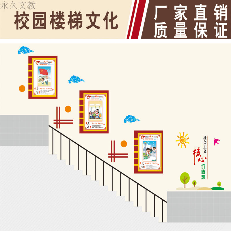 School Cultural Wall Enterprise Cultural Wall Campus Exhibition Board Corridor Decoration Uv Engraved Cross Beam Hung Stairs Culture