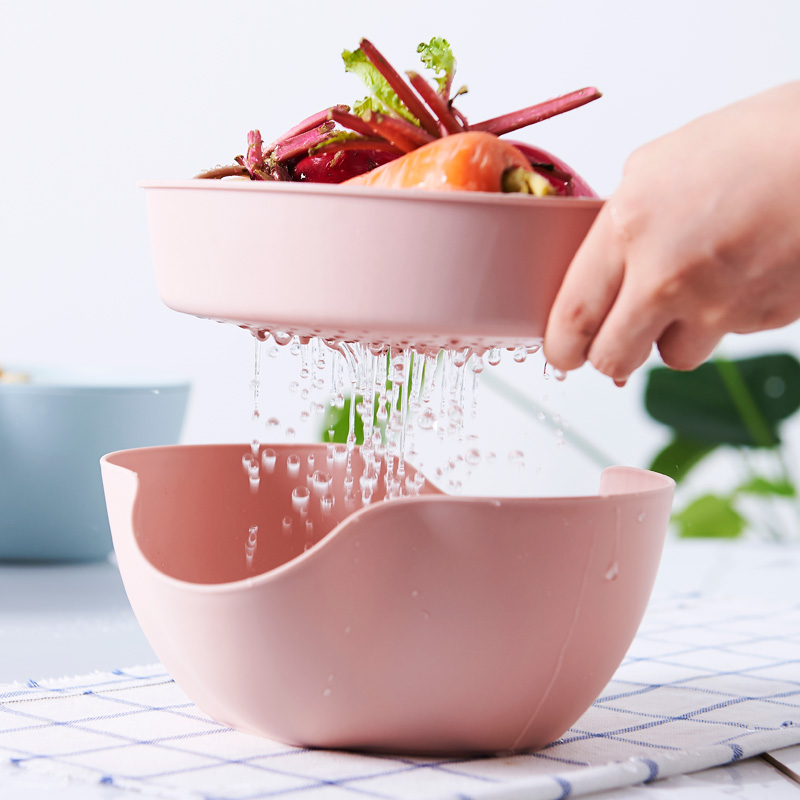 Plastic lazy fruit plate Double-layer vegetable washing basin drain basket Creative fruit plate Candy plate fruit box household vegetable washing basket