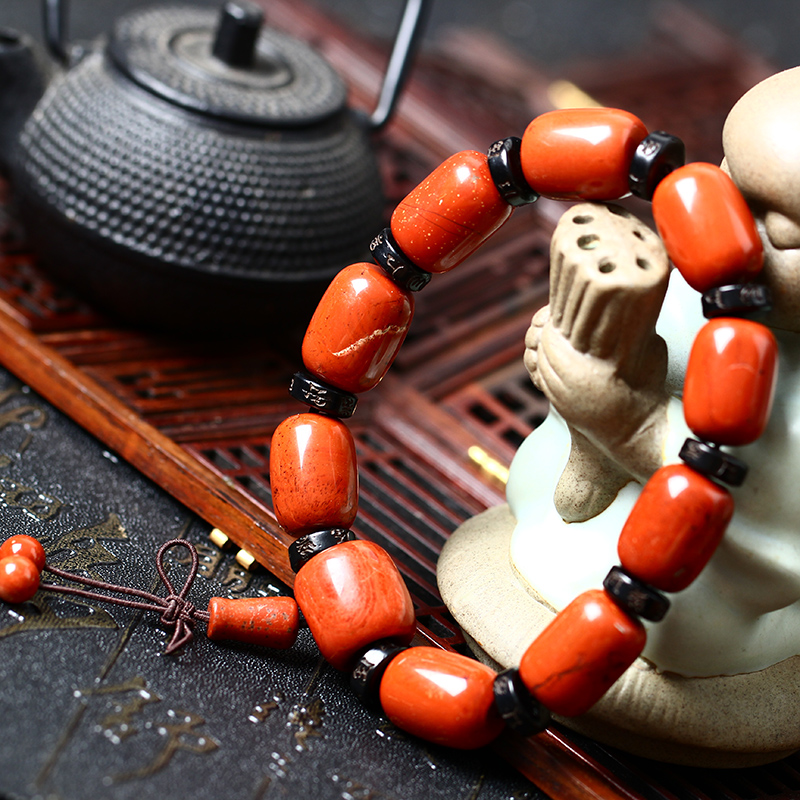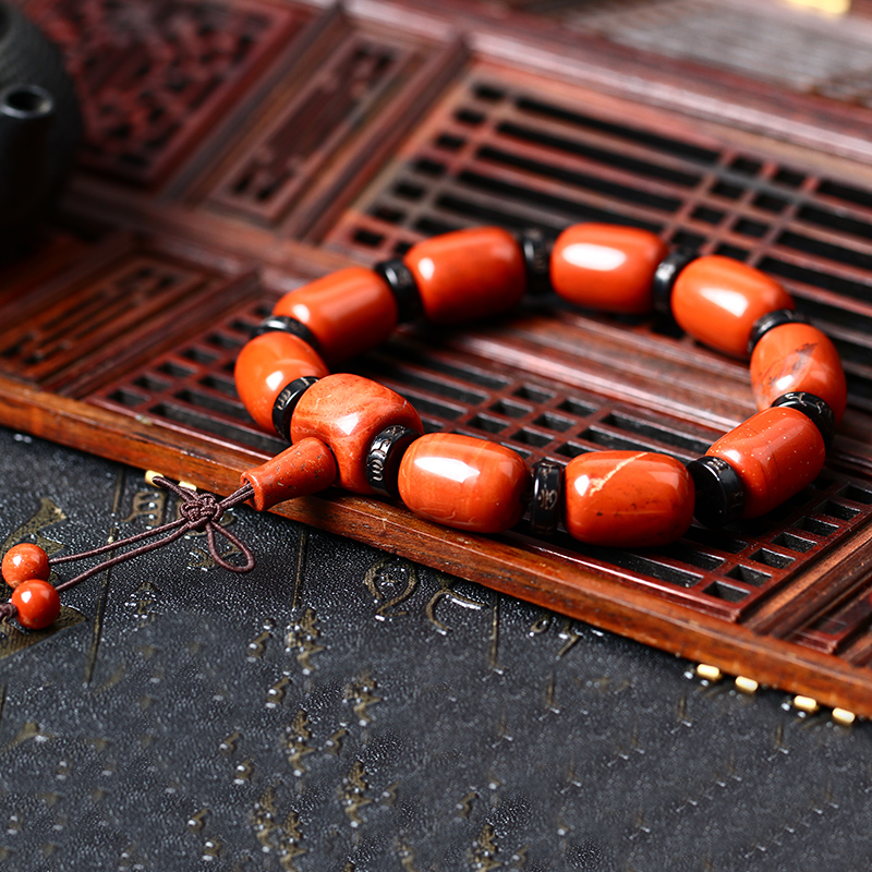 Red Bamboo Stone Stone Stele Amulet Shadow Stone Ornament Knots Imprint Album Buddha Beads Handmade for men and women