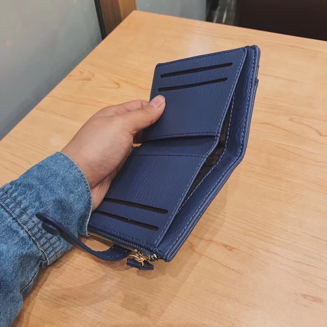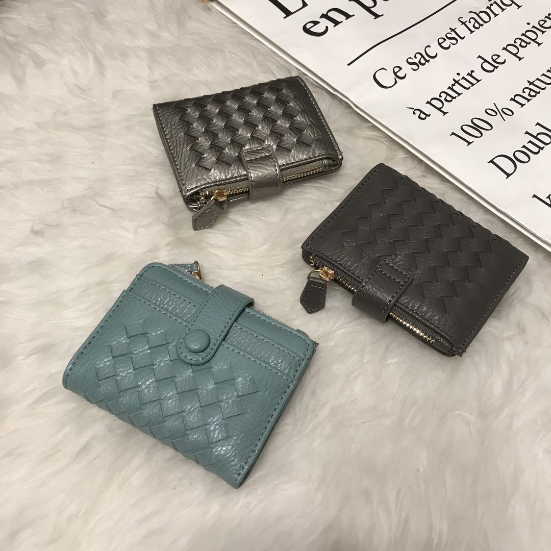 South Korean lady wallet shorts slim cute buckle Money clip Woven Folding Leather Clip Korean version Multi-blocking Zero wallet