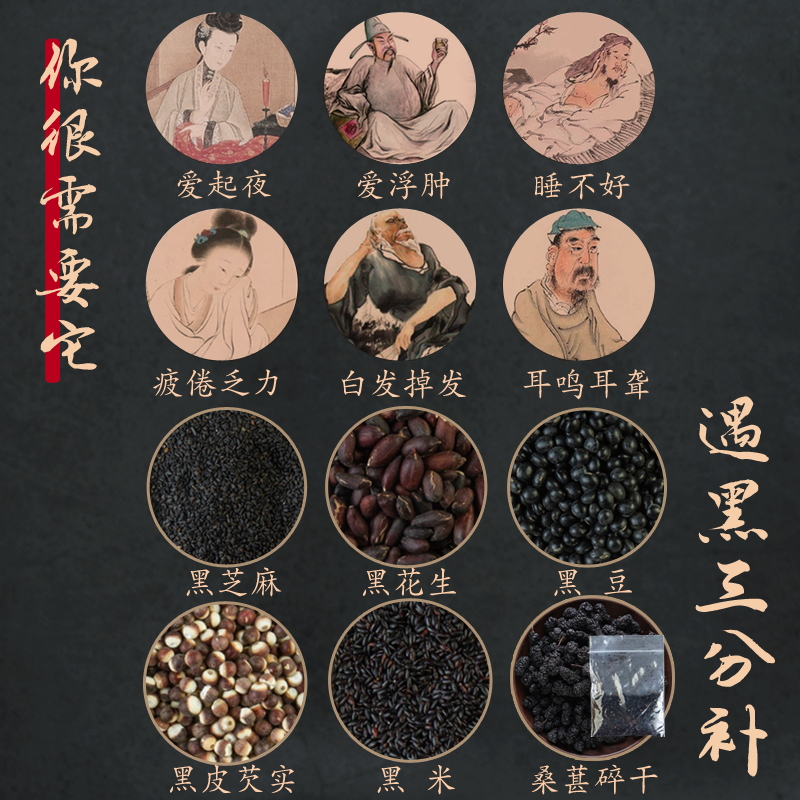 Black Sesame black bean black rice black peanut Gorgon (black skin) konjac flour Mulberry rock sugar