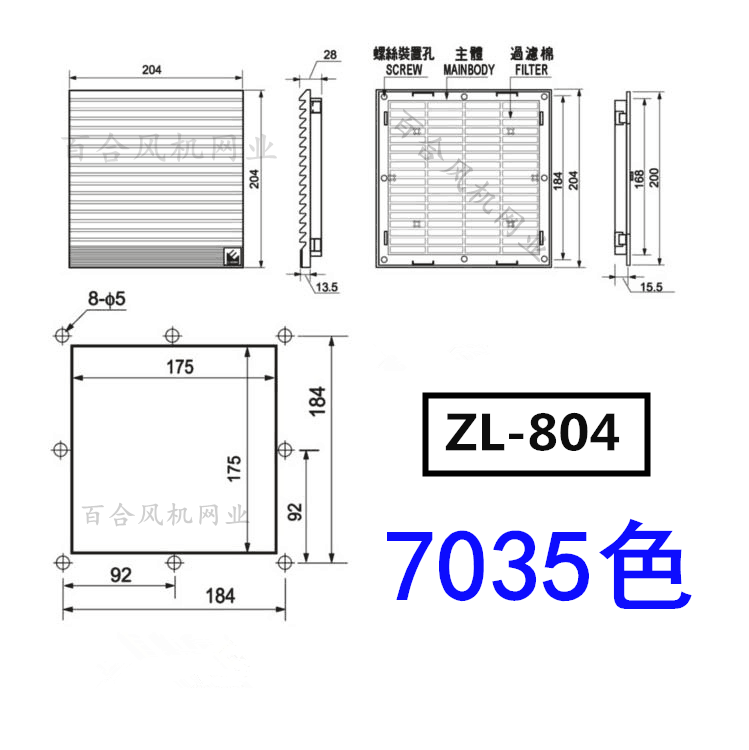 Axial flow fan fan ventilation filter group ZL-801 802 803 804 805 shutters and dust-proof mesh cover