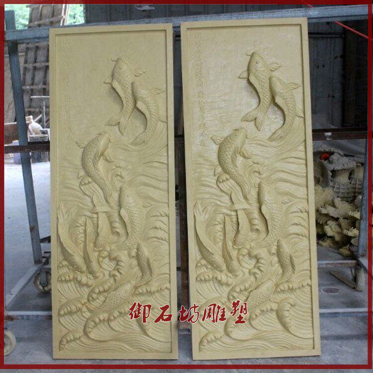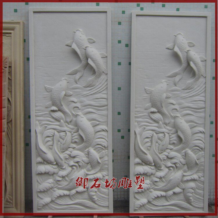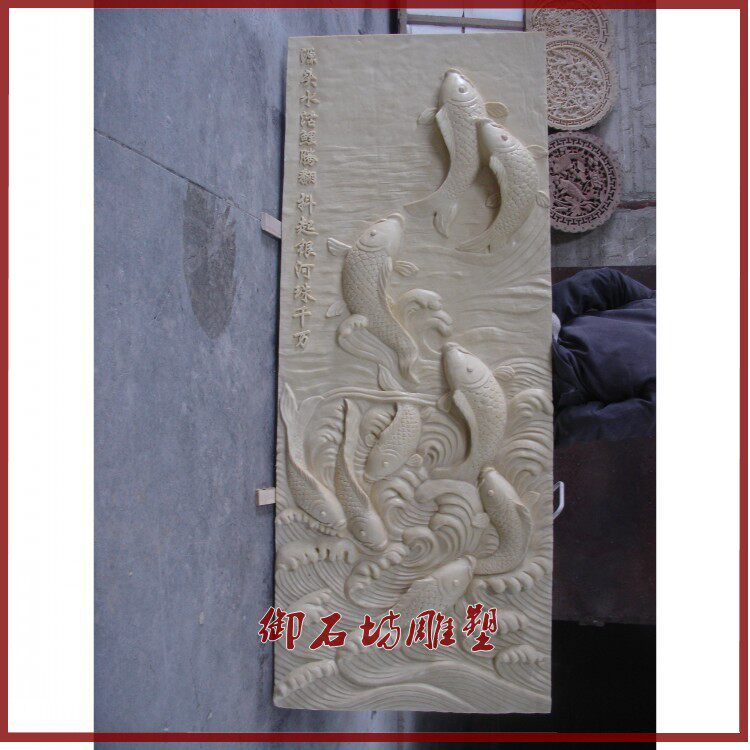 Sandstone relief TV background wall painting pendant sculpture fiberglass fountain Roman column carp leaping over the dragon gate