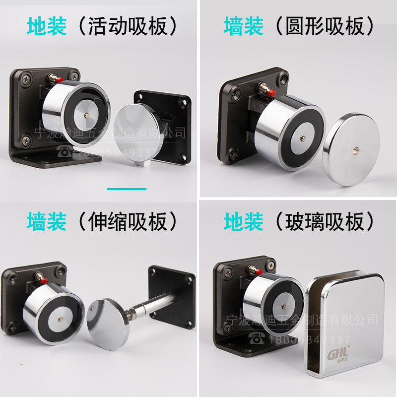 Wall fit (round suction plate) Wall fit (telescopic suction plate) Wall fit (chain suction plate) ground fit (round suction plate) ground fit (no frame glass door suction plate) fireproof door controller door suction 24V transformer stainless steel