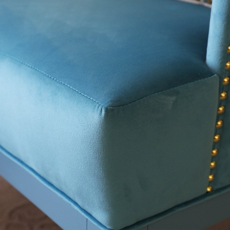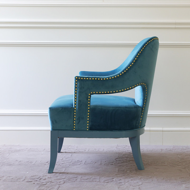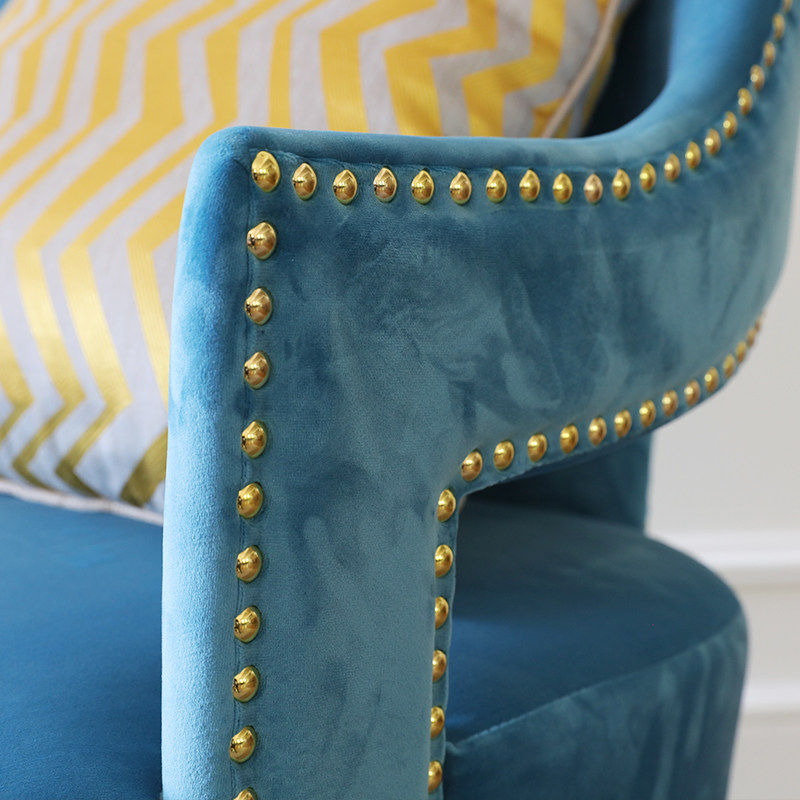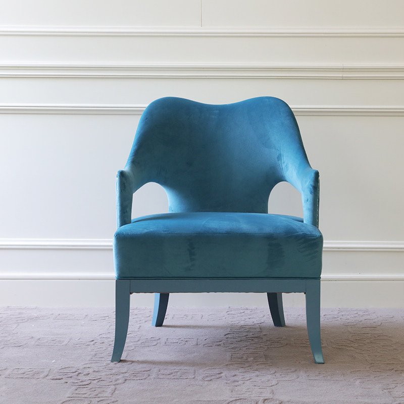 Minimalist modern light blue single sofa chair soft bag cloth art sofa living room solid wood casual seat light and luxurious