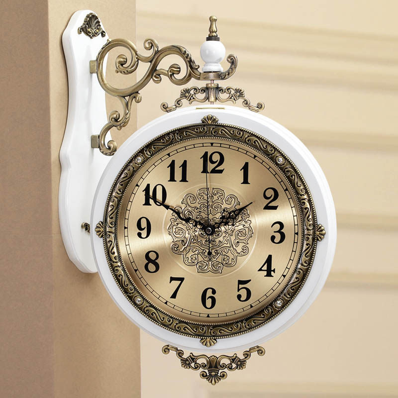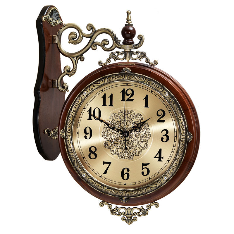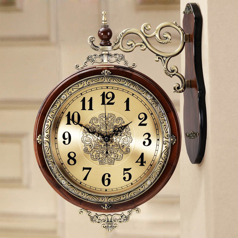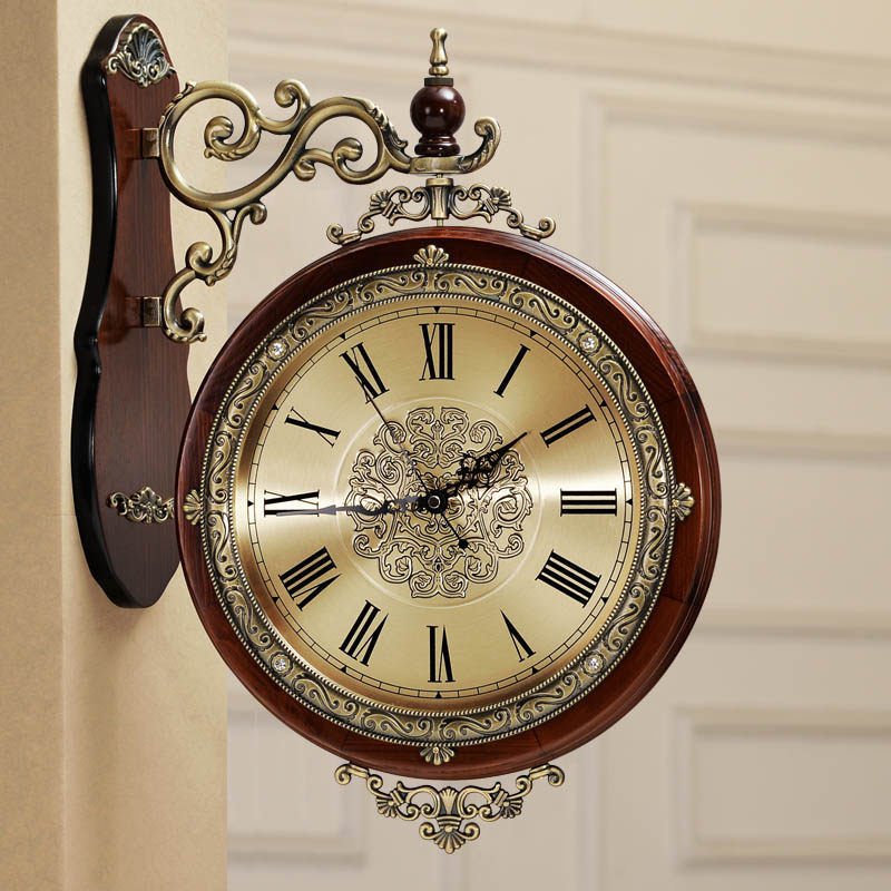 Eurostyle double-sided living room hanging clock muted two sides clock solid wood retro quartz clock Table wall watches Fashion Ideas