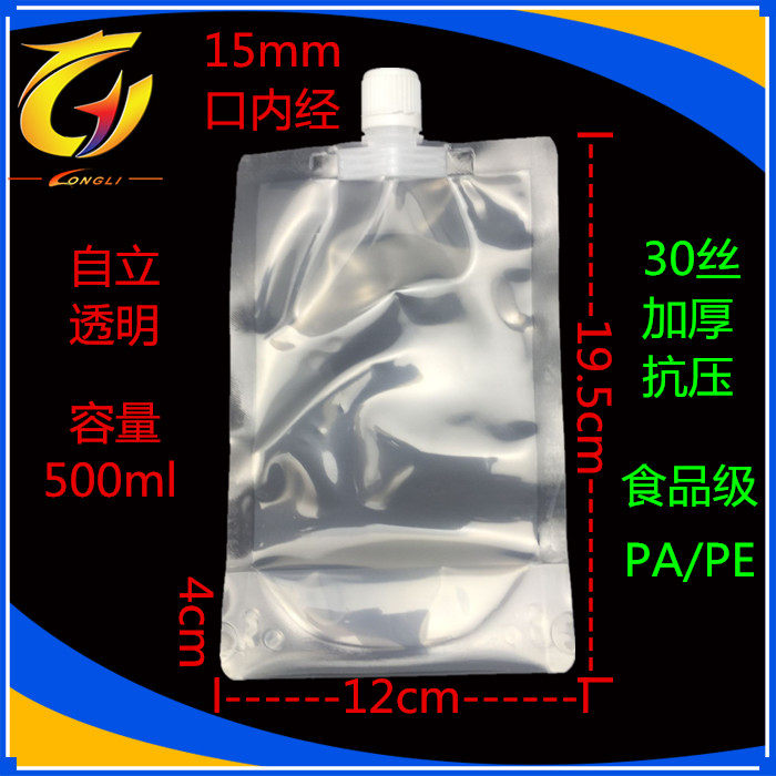 500ML transparent self-supporting large calibre transport pressure resistant pearl milk tea drink liquid suction nozzle bag 10