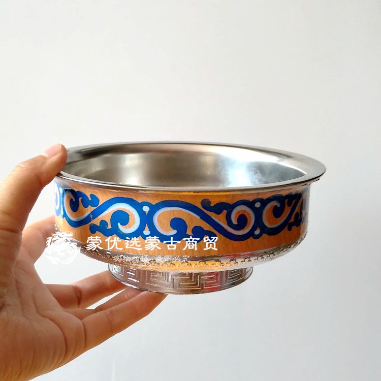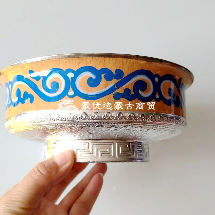 Mongolian silver bowl painting flower top dance bowl Inner Mongolia characteristic crafts silver bowl Mongolian souvenir furniture accessories