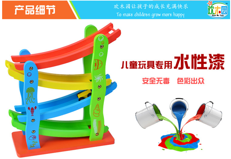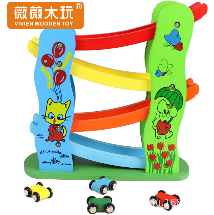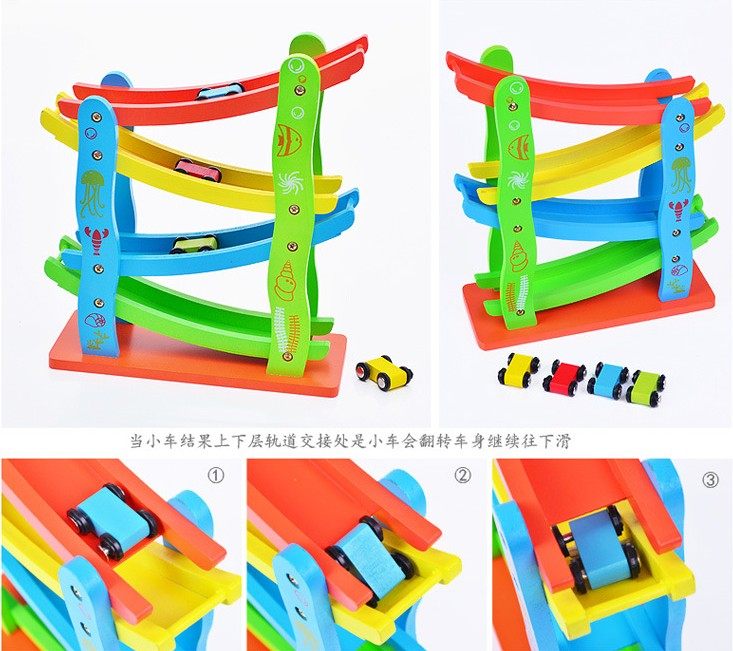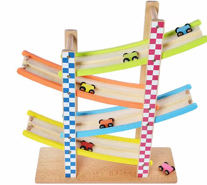 Wooden slide four-story track slippery speed Car Children boy baby inertia speed educational toy 1-2-3 years old