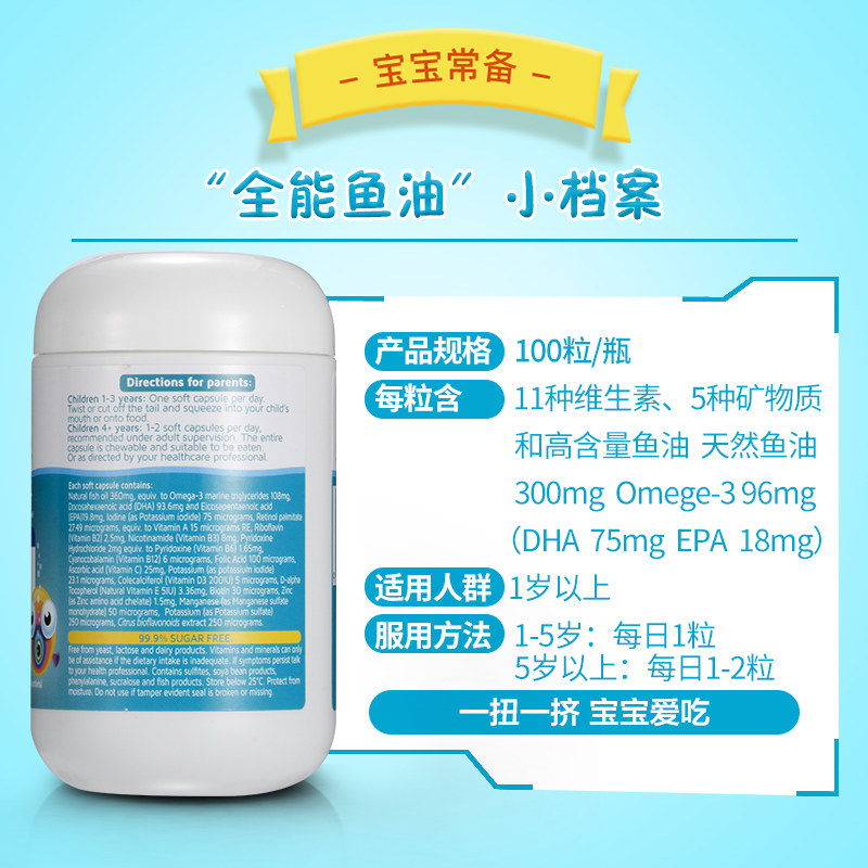 100 Capsules of Children's Composite Vitamin Fish Oil Capsule (Eye-Eye Development)