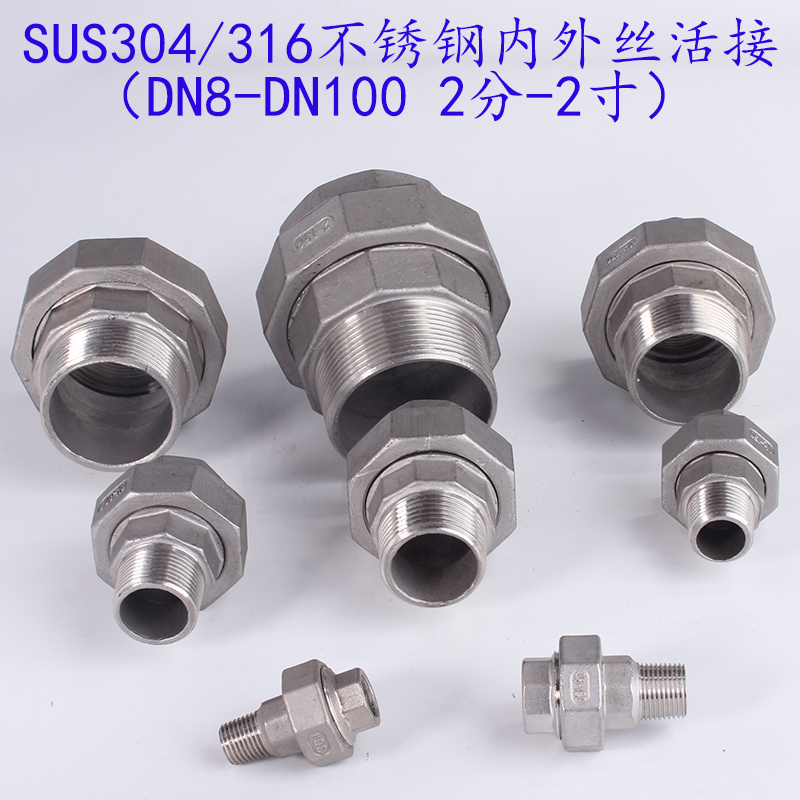 304 stainless steel inner and outer wire live stainless steel live connection inner and outer tooth pipe fitting joint 4 minutes 6 minutes 1 inch 2 inch