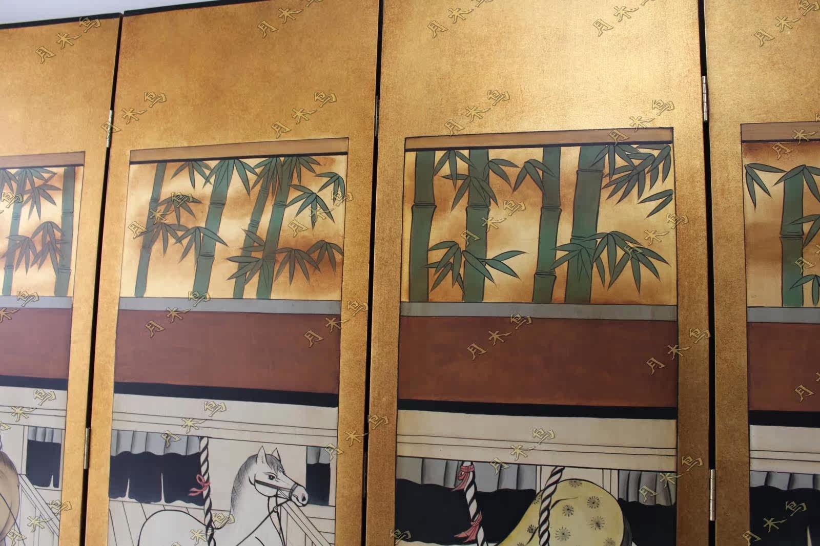 New Chinese living room gold foil made old screen wine building decorated into folding partition solid wood painting