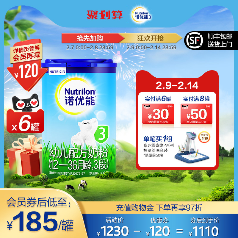Nuoyouneng 3 stages * 6 cans 1-3 years old cow pen milk powder official import three stages of toddlers