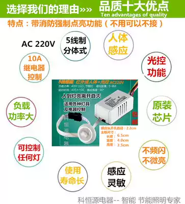 Human body sensor switch 220V High Power 5-wire automatic delay photosensitive corridor smart LED lamp infrared module