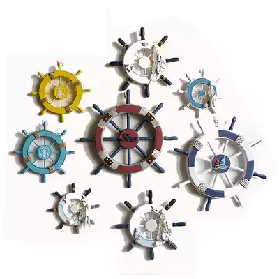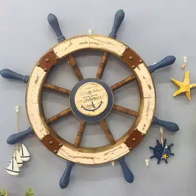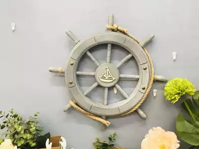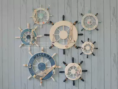 Mediterranean style decorative wooden steering wheel helmsman rudder creative Bar Cafe background wall decoration