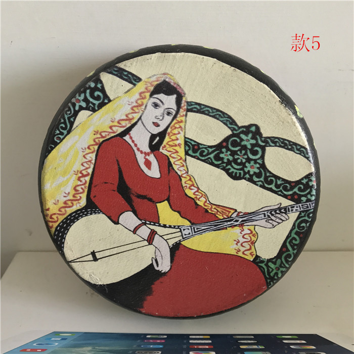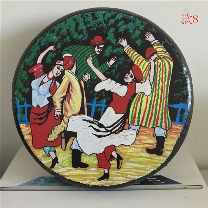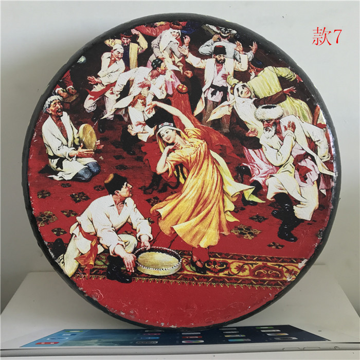 Xinjiang Uygur Artisanal Folk Musical Instrument Hands Drum Bull Leather Colored Drawing Stage Performance Props Decoration Drum 6 Sizes